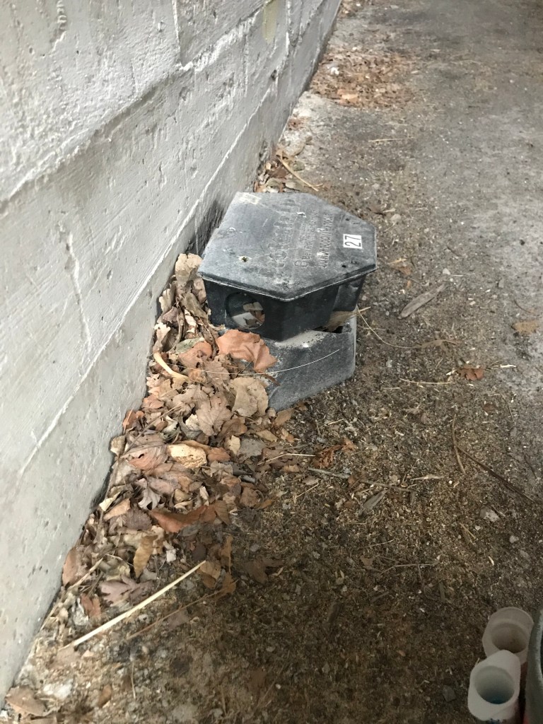 Those dirty rodent stations with the trash and leaves hanging out the side are giving your customer a level of vulnerability. Rodents like it at the building next door for harboring. No one is bothering them. No one has cleaned the bait stations. No one cares. It’s a safe haven inside that box.