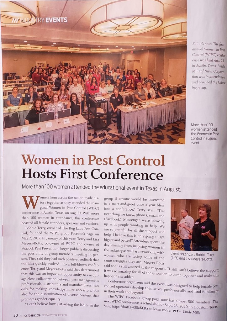 In August 2019, I attended the Women In Pest Control 1st annual conference. More than 100 women made that inaugural trip to Austin, Texas. This event was designed to give women the freedom to have open, honest conversations, get CEUs, and do meet and greets – without judgement. When I walked into that room, I felt like I had known all of those women as friends for most of my life.